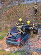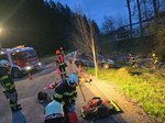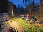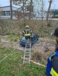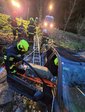 Anschließend wurde der PKW mittels Einbauseilwinde unseres LFB gesichert. Erst danach konnte mit der schonenden Rettung der beiden Personen begonnen werden, die mithilfe eines Spineboards über eine Leiter aus dem Fahrzeug gerettet wurden.